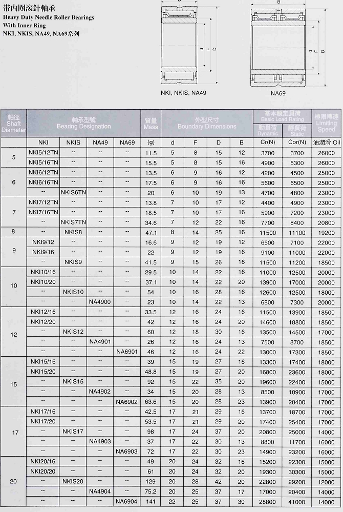 帶內圈滾針軸承(Φ5-20)NKI,NKIS,NA49,NA69