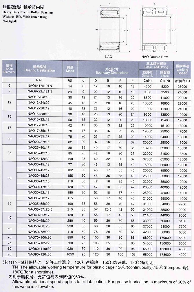 無邊擋滾針軸承帶內圈(Φ6-90)NAO