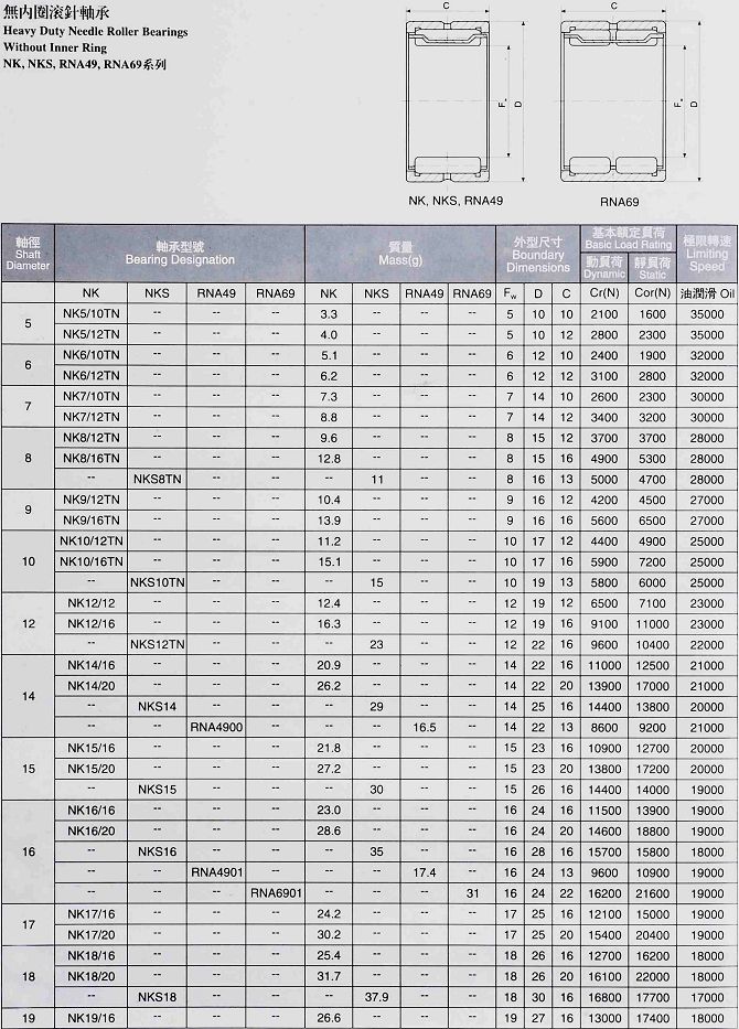 無內圈滾針軸承(Φ5-19)NK,NKS,RNA49,RNA69