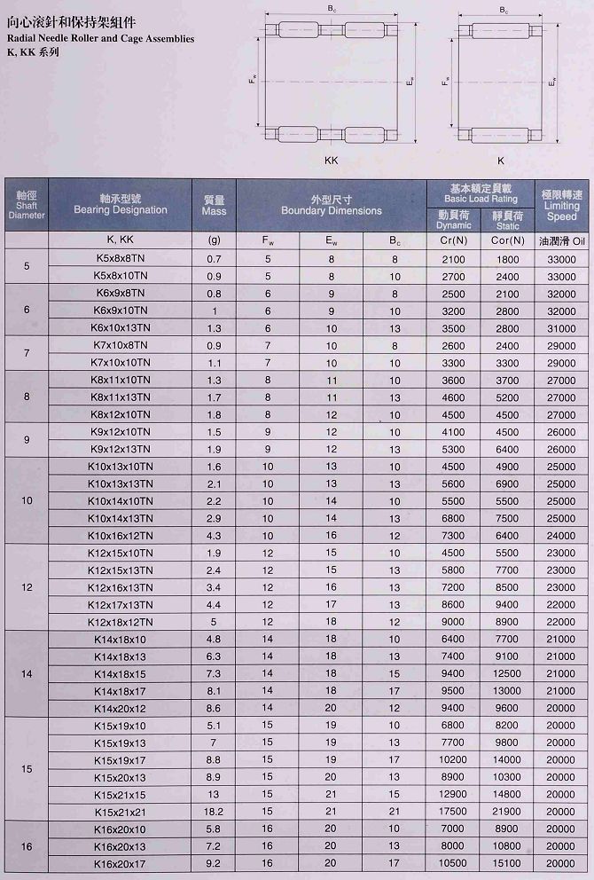向心滾針和保持架組件(Φ5-16)K,KK,KBK