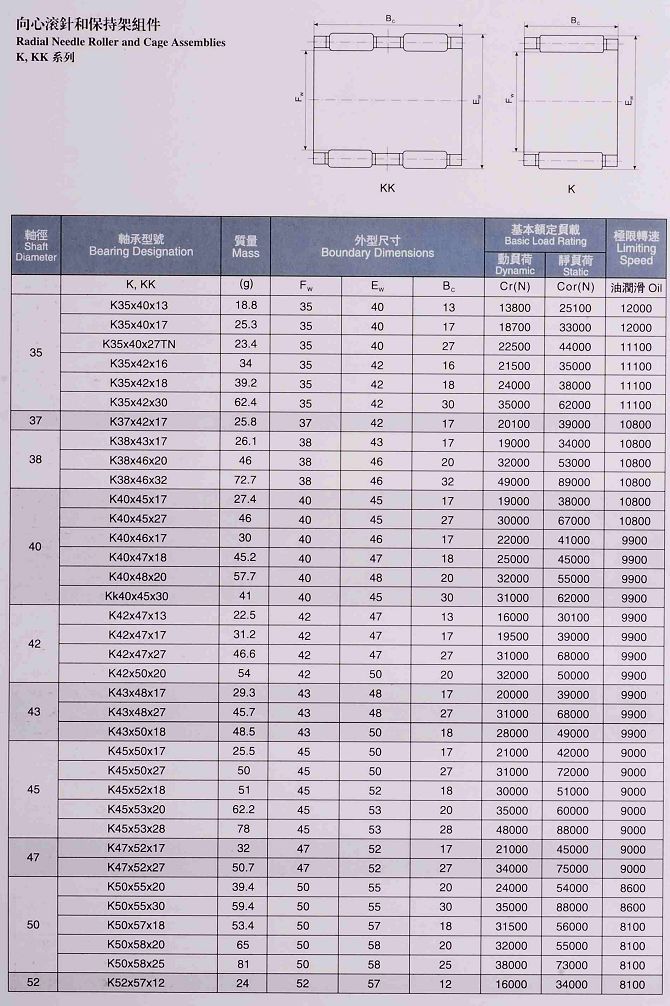 向心滾針和保持架組件(Φ35-52)K,KK,KBK