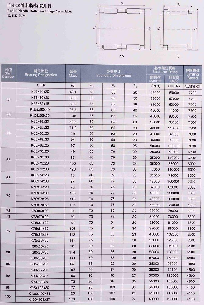 向心滾針和保持架組件(Φ55-100)K,KK,KBK