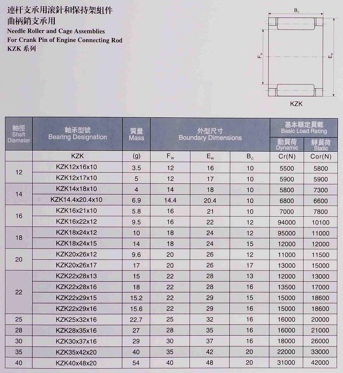 連杆支承用滾針和保持架組件曲柄銷支承用(Φ12-40)KZK