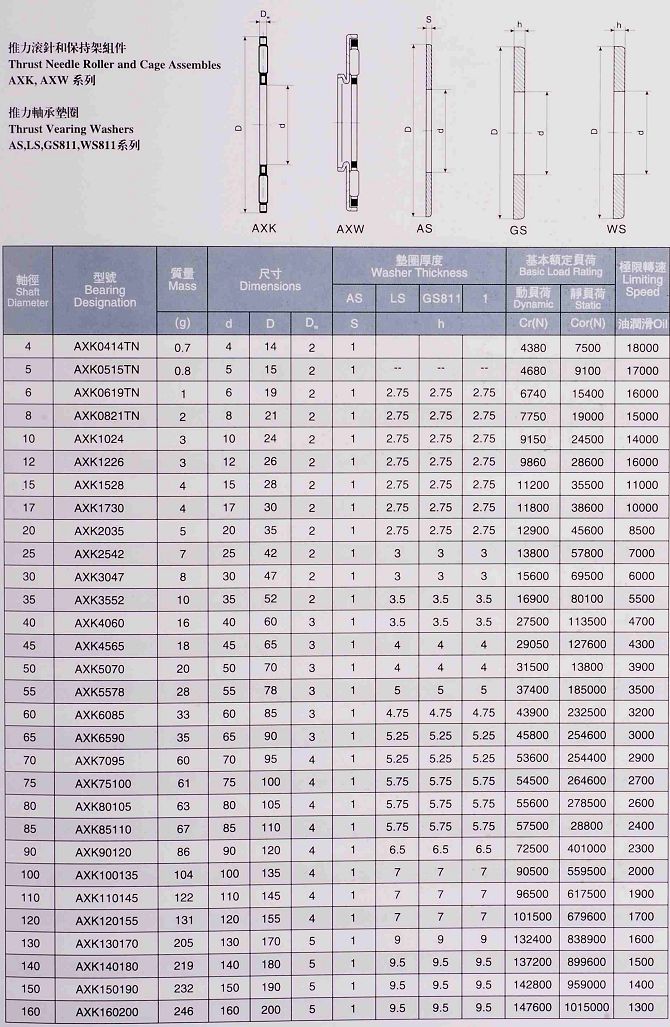 推力滾針和保持架組件--推力軸承墊圈AXK,AXW--AS,LS,GS811,WS811(公制)