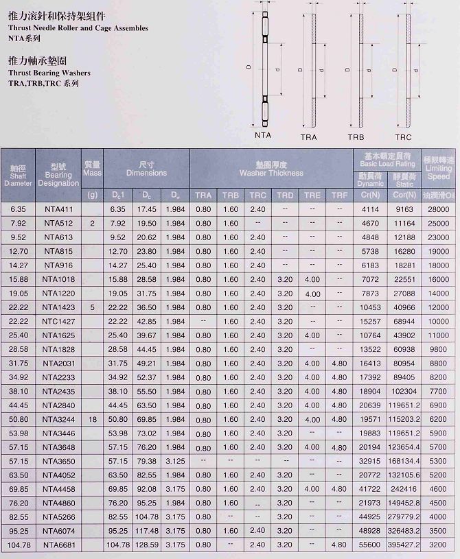 推力滾針和保持架組件--推力軸承墊圈NTA--TRA,TRB,TRC(英制)