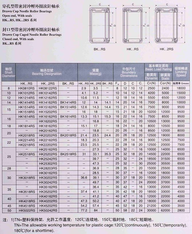 穿孔型/封口型帶密封衝壓外圈滾針軸承HK...RS,HK...2RS