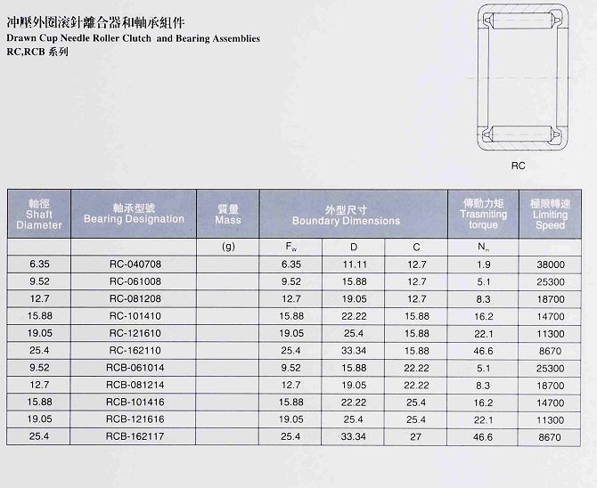 衝壓外圈滾針離合器和軸承組件-RC,RCB